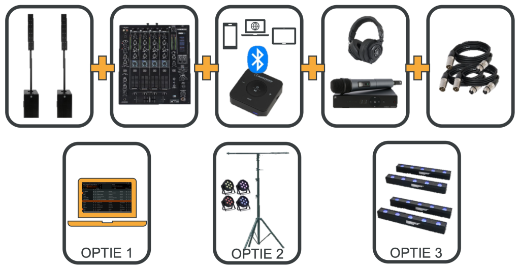 Bij EQ-Music bieden we licht- en geluidsmateriaal aan voor uw feest, huwelijk, verjaardag, receptie, toespraak, tuinfeest… Hierbij kan U uw eigen laptop of telefoon gebruiken om uw favoriete muziek weer te geven op een krachtige installatie of U kiest voor een laptop vol met muziek en genres voor ieder feest.